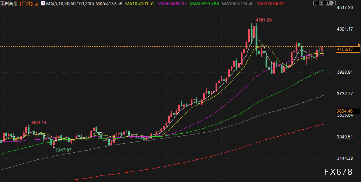 汇通财经APP讯——周四(北京时间11月27日)亚市早盘,现货黄金交投于4167.57美元/盎司附近,金价周三延续涨势,攀升至逾一周高位,受市场对美联储将在下月降息的预期提振;美原油交投于58.50美元/桶附近,油价周三从一个月低点小幅回升,投资者在感恩节假期前权衡供应过剩前景与俄乌和平谈判进展。