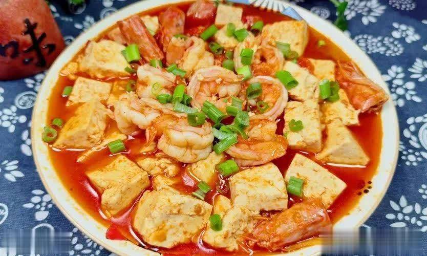 食材:豆腐、鲜虾、西红柿、葱、姜、生抽、食用油。