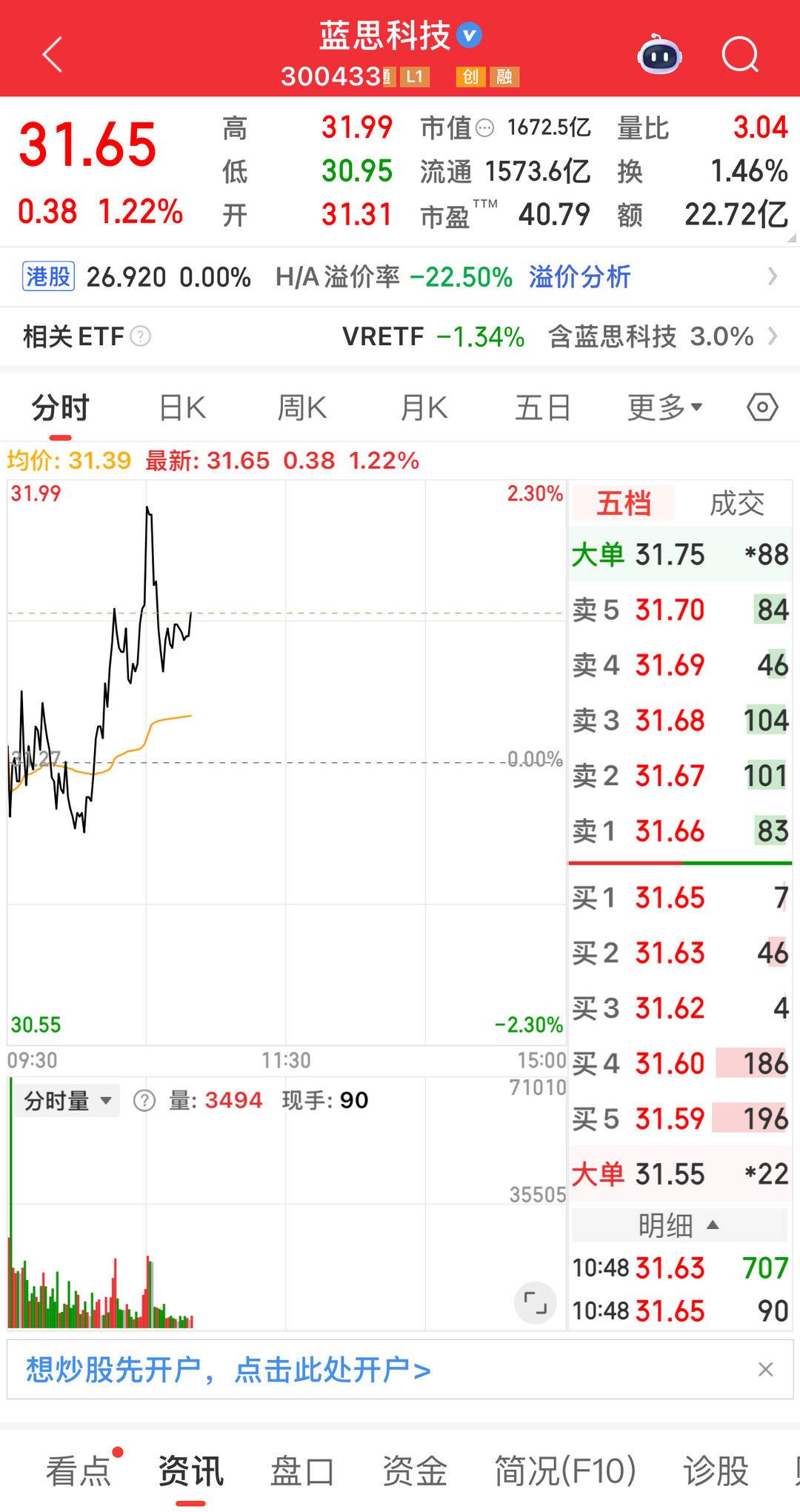蓝思科技市值22.72亿元。