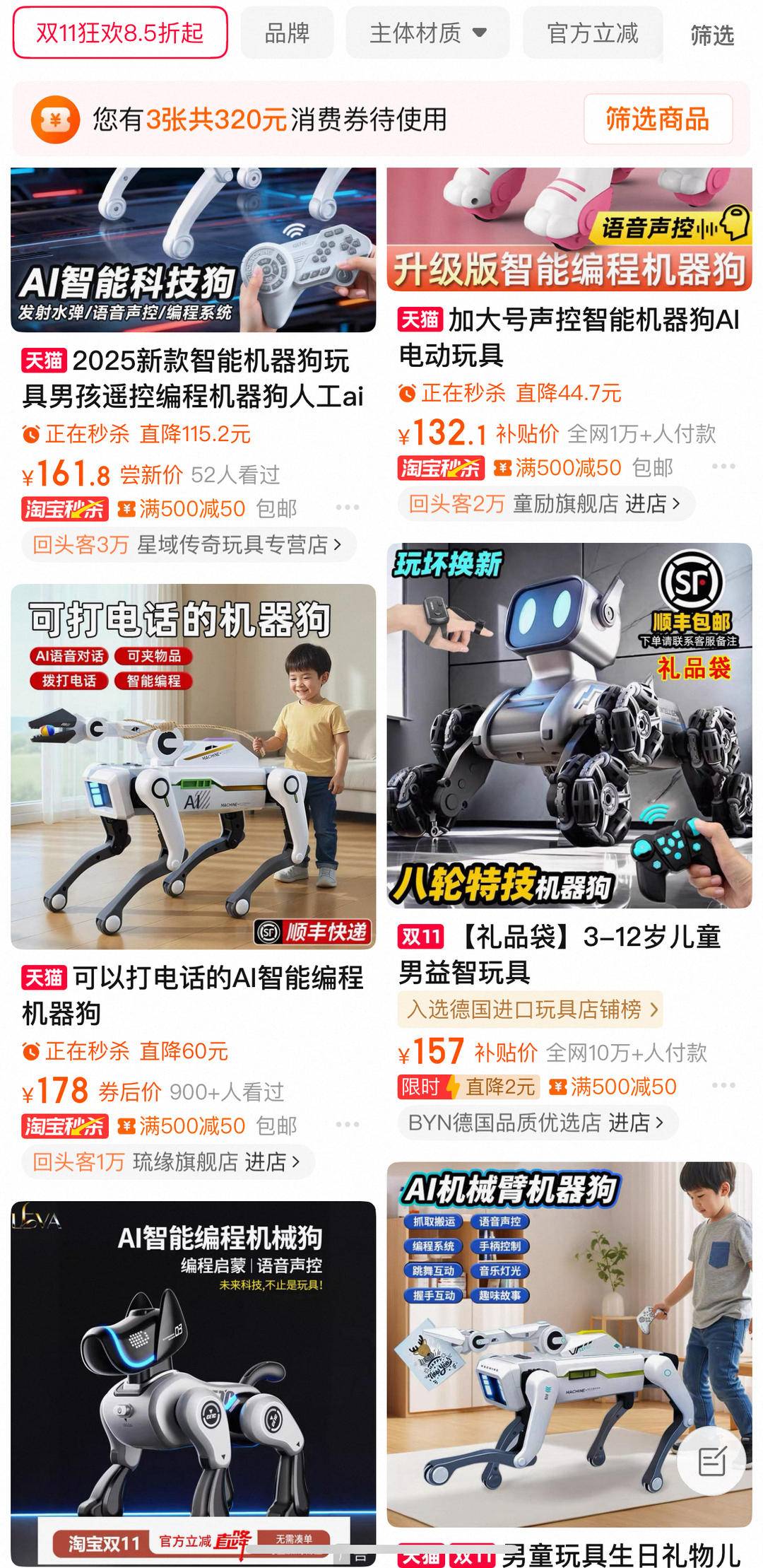 记者在淘宝输入Rover X1,平台显示,在线销售的是智能遥控机器狗玩具,并非Rover X1。价格在100—1000元不等。