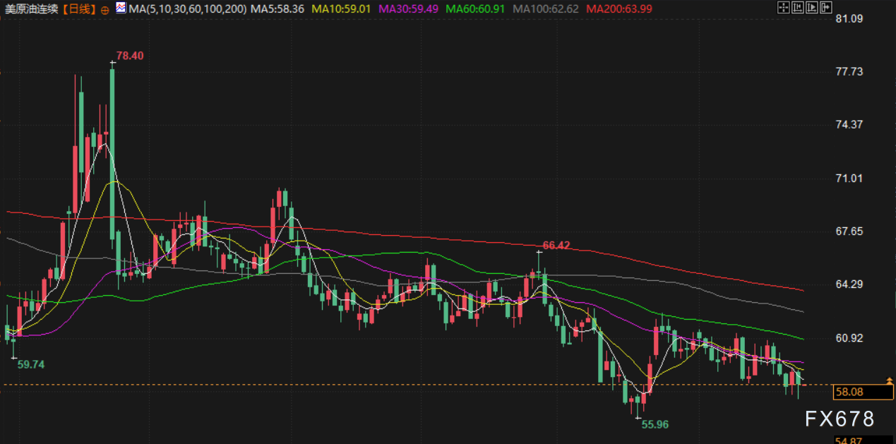 布伦特原油期货下跌1.4%,收报每桶62.48美元;美原油期货下跌1.5%,收报每桶57.95美元。两大指标原油在盘中均触及10月22日以来的最低水平。